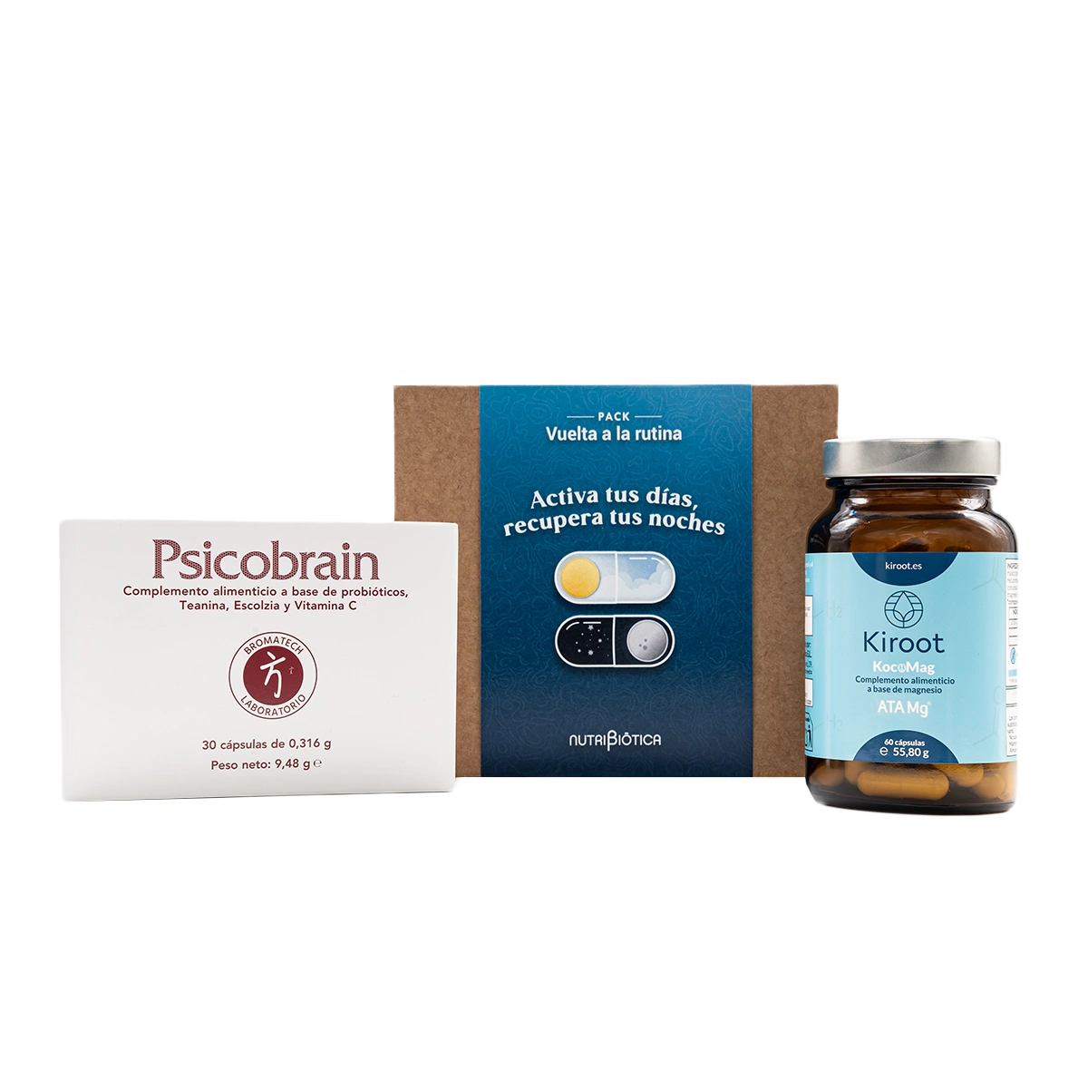 El pack propone un ritual sencillo: Psicobrain por la mañana para afrontar el ritmo diario con calma y enfoque, y KocoMag por la noche para favorecer un descanso profundo y reparador.
